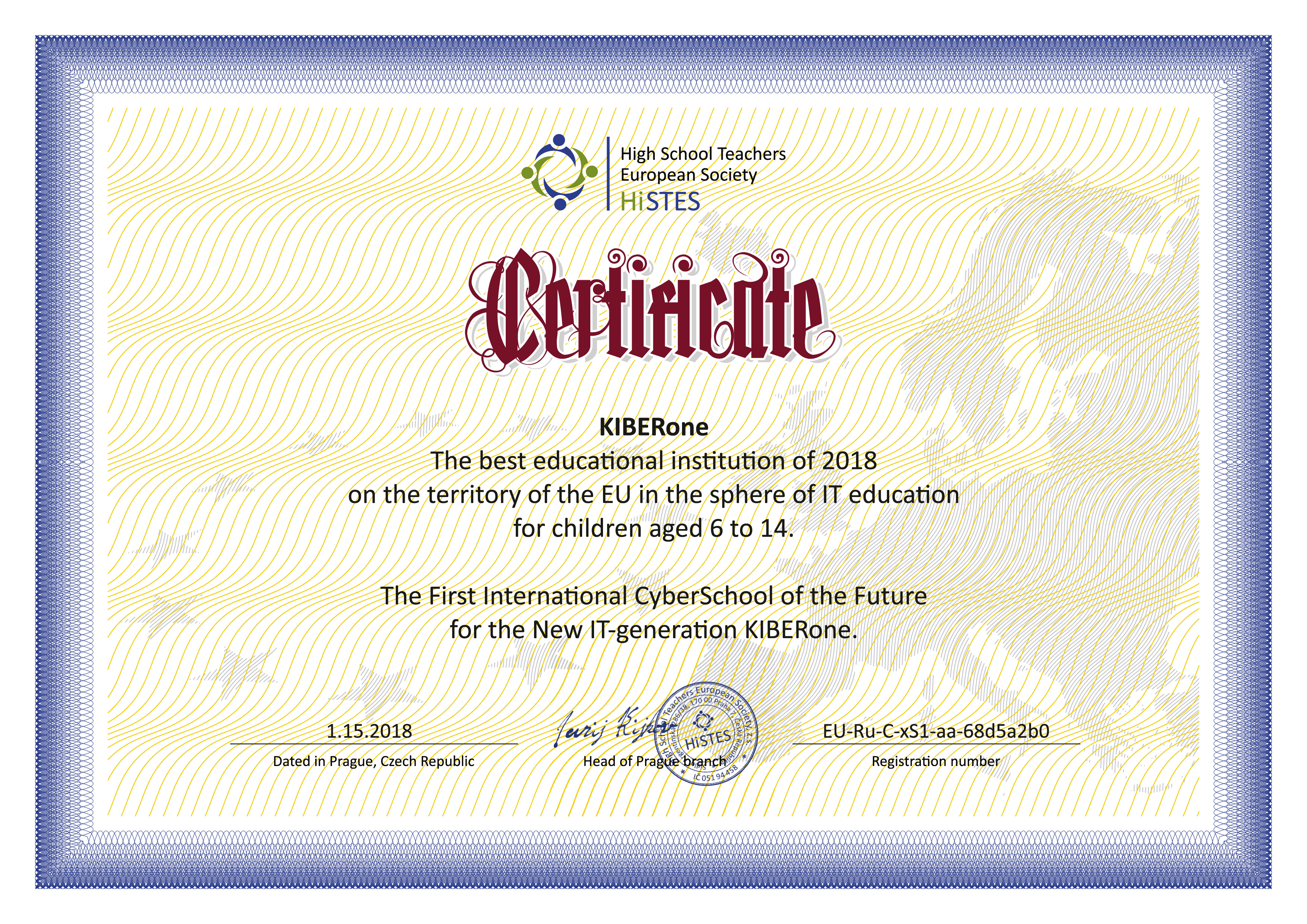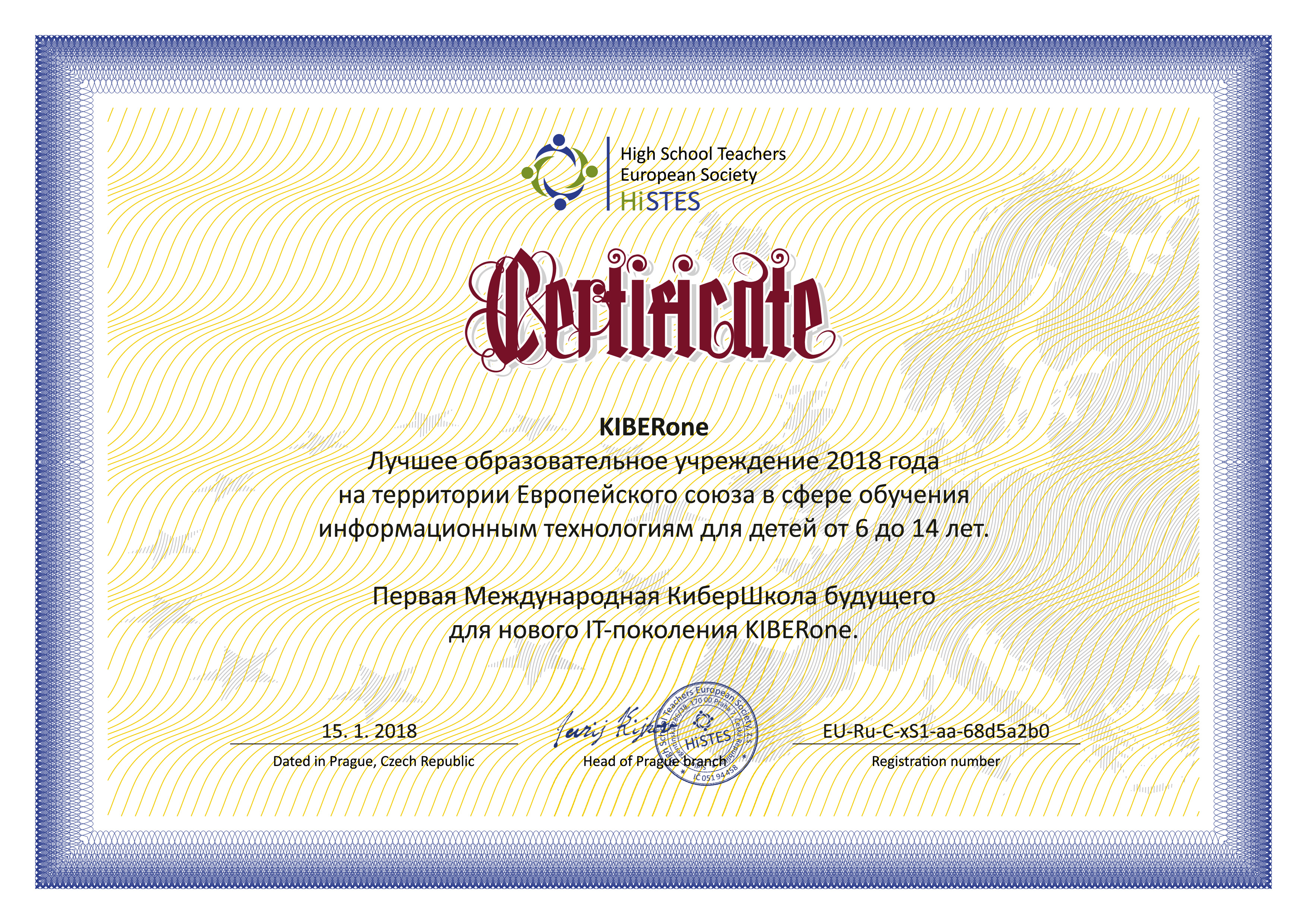 Европейская Ассоциация ВУЗов и преподавателей высшей школы HiSTES признала Международную КиберШколу KIBERone лучшим образовательным учреждением 2018 года на территории Евросоюза в сфере обучения информационным технологиям для детей от 6 до 14 лет. ⠀
